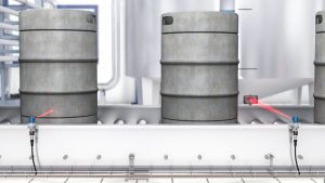 In breweries, reusable containers (KEG) must be transported between different work steps such as washing, filling or palletizing on roller conveyors. To prevent jamming and allow the continuous flow of material, the containers must be recorded and counted at several locations. Retro-reflex sensors installed on the side of the roller conveyors reliably detect beverage containers despite reflective, matt, light or black surfaces.